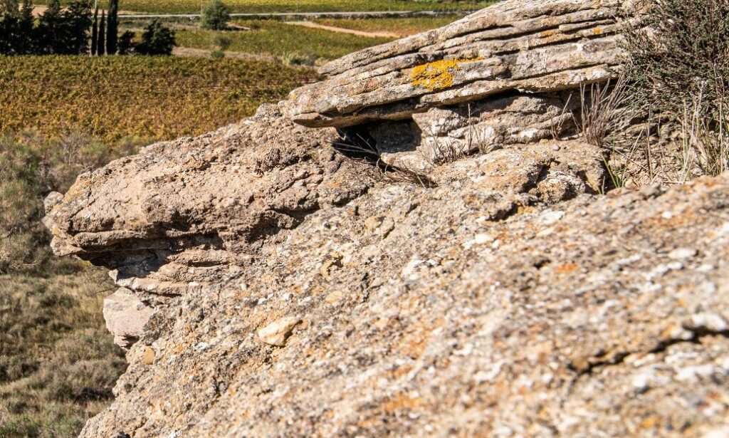 Géo-morphologiquement la « molasse » de Carcassonne domine. C’est une roche détritique déposée pendant l’Eocène, lors du soulèvement des Pyrénées. Elle se présente sous forme de «lentilles» agencées de façon anarchique. Les trois matériaux de base sont : le conglomérat ou poudingue, le grès et les marnes. Les grès et poudingues plus durs affleurent parfois en petites buttes de hauteurs variables et marqueurs du paysage. Ces buttes sont couvertes de pins ou d’une végétation typiquement méditerranéenne (thym, lavande et genévrier, chêne vert et parfois aussi les fameux pins d’Alep et des chênes kermès).